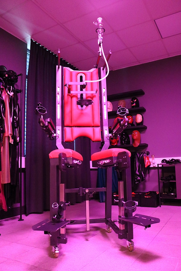 Das Gummizimmer ist ein wahrer Traum für jeden Gummi- und Latexfetischisten. Auf 62 qm voller Latex und dessen Geruchs gibt es alles, um diesen Fetisch in jeder Form auszuleben. Die funktionellen Möbel, wie elektrisch aufstellbare Bondage-Liege, elektrischer Sklaven-Stuhl und elektrischer Gyn-Stuhl in Rot mit Anthrazit-Finish bieten einen Kontrast zu graufarbenen Wänden und umfangreicher Latex Ausstattung, die den Raum nicht nur schmückt, aber auch als Outfit-Anregung für den Besucher bietet.