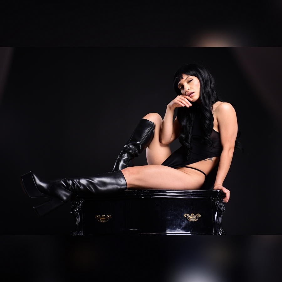 Zwei ineinander verschmelzende Kontraste, die gegensätzlich sind, aber sich nicht widersprechen. Denn beide sind grausam und fürsorglich, wahnsinnig und kontrolliert, nonkonform und wandelbar. Zum einen die anspruchsvolle, sophisticated Mistress, die das, was an natürlicher Dominanz in ihr ist, vervielfacht im Studio auslebt. Zum anderen die abgespacte, Horror-Kink-liebende, abgedriftete, psychopathische, schuldige Täterin Cloe. Wir bewegen uns in dem Spielraum Hölle, der uns beiden richtig gut tut.