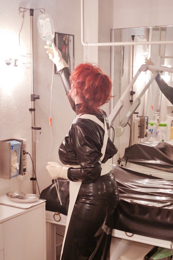 Ein Sklave sollte sich bei Ihr beherrschen können, da sonst schon mal Peitsche oder Rohrstock zum Einsatz kommen. Madame P. ist nicht nur eine Domina in Nylons und High Heels-, Lack, Leder, Latex oder Satin, sondern auch verständnisvolle Ärztin.