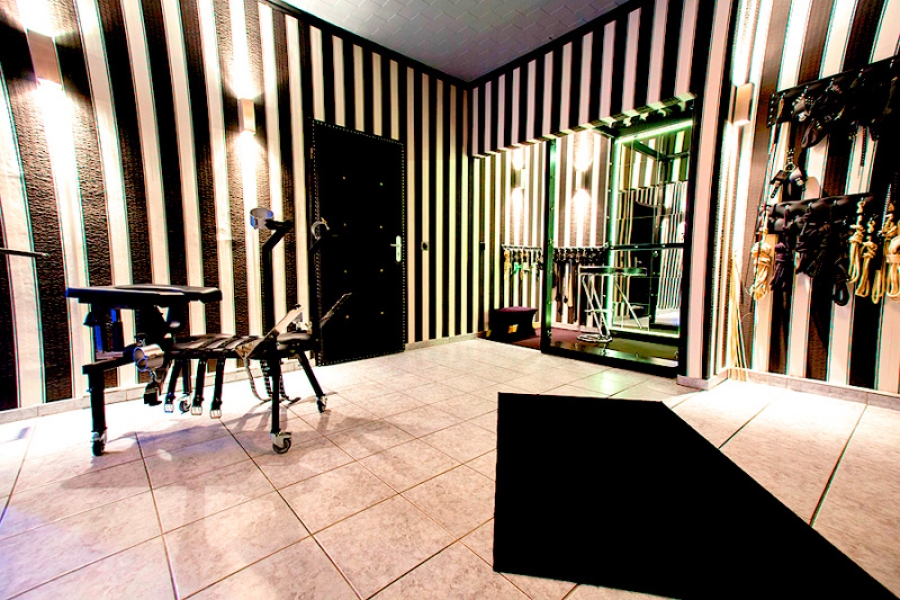Ein Flair aus Leder, Eleganz, mystischer Stimmung zeichnet unsere klassischen Studioräume aus. Die große Vielfalt von speziellen Stühlen zur Fesselung und Disziplinierung, Käfige, Bondagerahmen sowie viele weitere, äußerst zweckdienliche SM Möbel und Utensilien geben den Bizarrladies und Herrinnen des Hauses den Raum um ihre Neigungen und Gelüste von Macht und Ohnmacht zu zelebrieren.